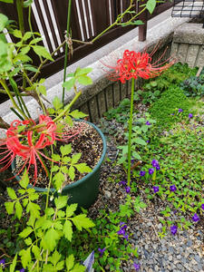 彼岸花も2本だけ満開。来年以降に増えてくれるかな?ひと月前に見切り品200円で買ったキキョウは毎日咲いてくれる。良い買い物をした気分。