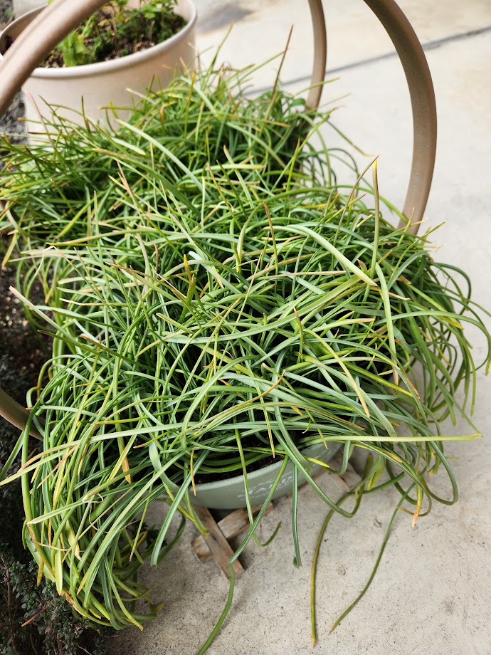 今年のムスカリは12月末からこの前までビニールをかけていたので葉っぱがそんなに痛んでいない。例年なら半分ほどカットしないとならないくらい黄ばんでいる。早くつぼみ見えないかな?