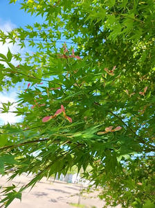 先日青々とした若葉の先端にイロハモミジの小さな赤い花が可愛くて見とれてしまった。
