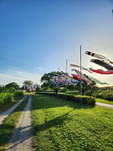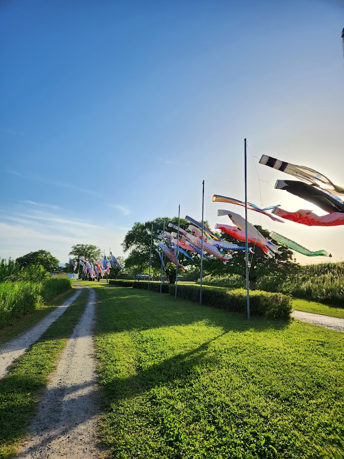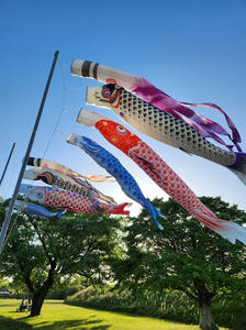ある河川敷きに沢山の鯉のぼりが風にたなびいてるよと長女から教えてもらい見に行く。