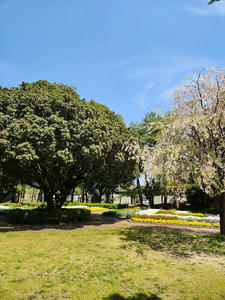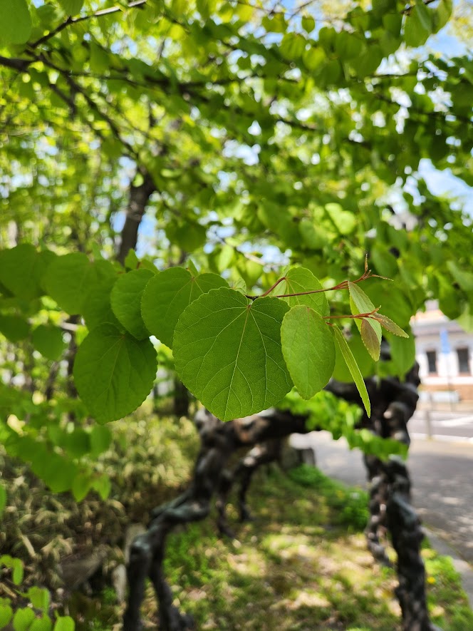 バス停の近くの桂の木がきれいな葉になっていた。公園のメタセコイヤも緑色の衣をまとっている感じだった。しだれ桜は少し花が残っているものの、全体に木々の緑が美しく公園も静かになって落ち着いてきて散歩するのに良い。一時期は桜祭りで人もお店もにぎわって拡声器で音楽を流し少々うるさかったなあ。