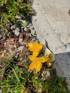黄色のクロッカスが最初に咲いた、紫はまだみたいだ。
