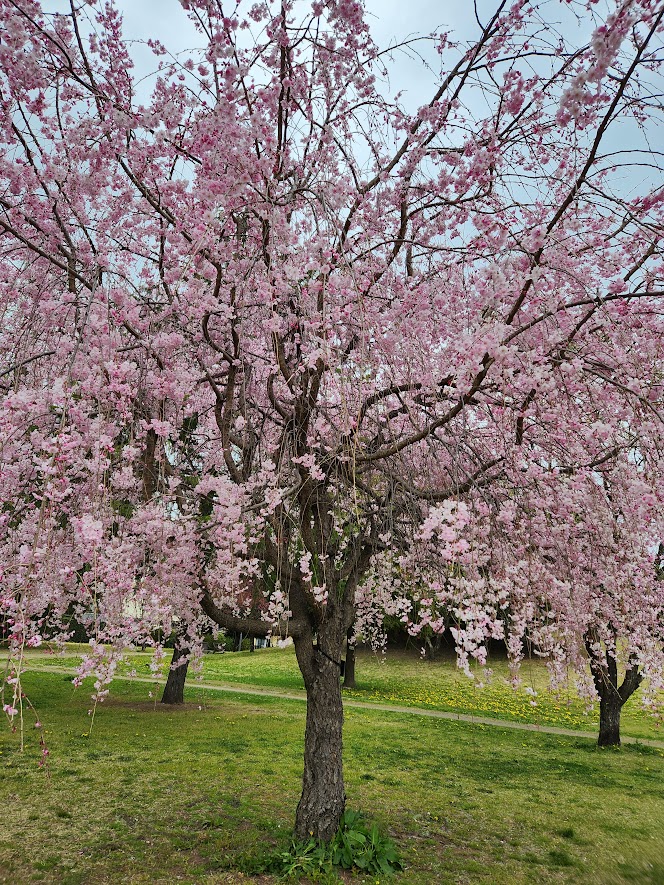 近場の公園に散歩に行くと、しだれ桜がきれいに咲いていた。黄色い色が鮮やかな日本タンポポ。芝生に良く似合う。持ち家の時、庭に種が飛んでくると困るなあと以前は思っていたのに、自然の中ではいいなあ・・・・と、このチャランポランさ。
