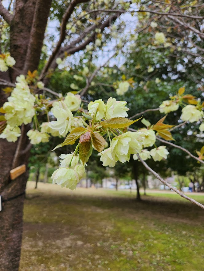 ギョイという里桜の薄黄色の桜もあって、来て良かったな。雨の予報もどうにか持ってくれて昼前から弱い雨で夕方から中降りに。