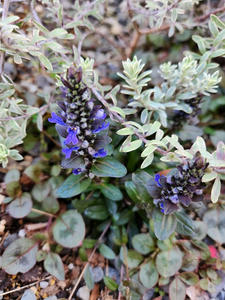 我が家の小さなベランダ庭では昨日からアジュガが咲きだした。2年前、以前の庭から数株持って来たもの。