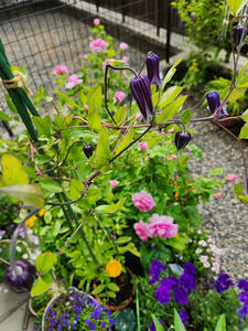低く仕立ててクレマチス「ロウグチ・滝口」とパチリ。