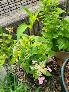 4年以上も前に小さな手のひらサイズの「紅・くれない」というアジサイを買った。なかなか育たずやっと最近咲き始めて来年用の枝も伸びてきた。あまり大きくならないので鉢植えだから丁度いい。「文鳥香・ぶんちょうか」というギボウシも一緒に植えている。これもつぼみが上がってきた、庭が広くないし賃貸なので鉢植えの選択が多いけど少しは楽しめる。