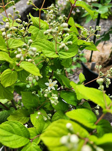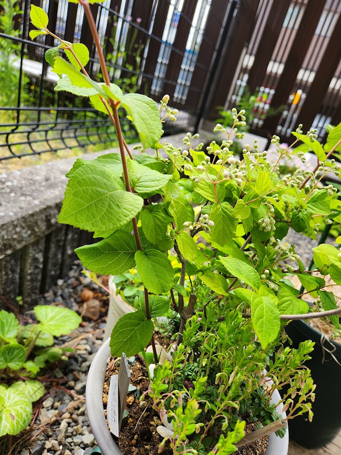 3年半前に高知の牧野植物園で見たマルバウツギに心惹かれ小さな苗をネットで注文したら今年鉢植えで咲いてくれた。去年、持ち家処分にあたり地植えしたものを掘り上げて賃貸へ運んだのだった。低木、剪定もOKらしいのでこじんまりと育てたい。