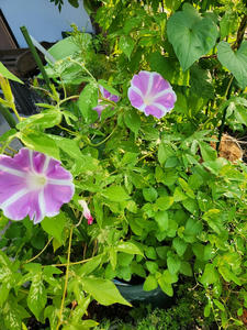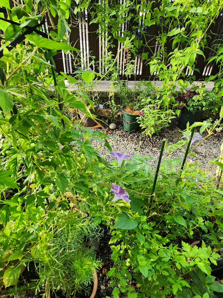 朝顔のヨウジロも毎日数輪咲いてくる。ピンクのシマシマって好きだなと思う。庭らしくなった狭いベランダ庭が愛おしい。