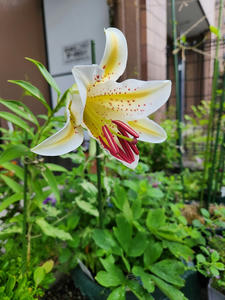 やっと百合が咲いた。今日は久々の晴れで35℃超えるらしい。