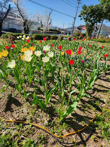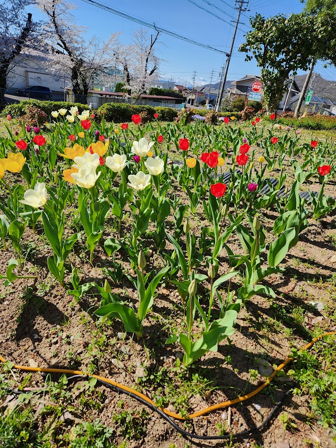 自宅の芝桜も咲き始め 近くの中学校の花壇のチューリップも可愛かった