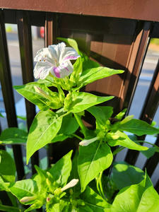 やっとだし好きなオシロイバナが咲いてきた。去年晩秋ん地際から切っていたもの。花が咲かないなと思っていたらチラホラ咲きだした。ホントはもっと沢山咲いてほしいのに。