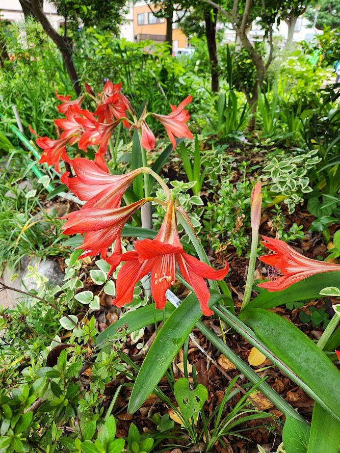 アジサイ、センダン、イボタノキ、アマリリス、雑草のカタバミやドクダミなど・・つゆ草キンシバイもあった。撮れなかったけど。