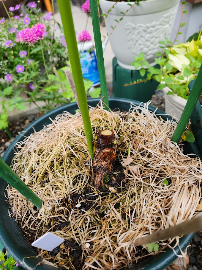 山ゴボウは切ってトイレに飾った。鳥さんがここに落としてくれたのが育っていたのにね。鉢上げしていたけれど、その鉢を使う必要が出たためゴメンねとする。