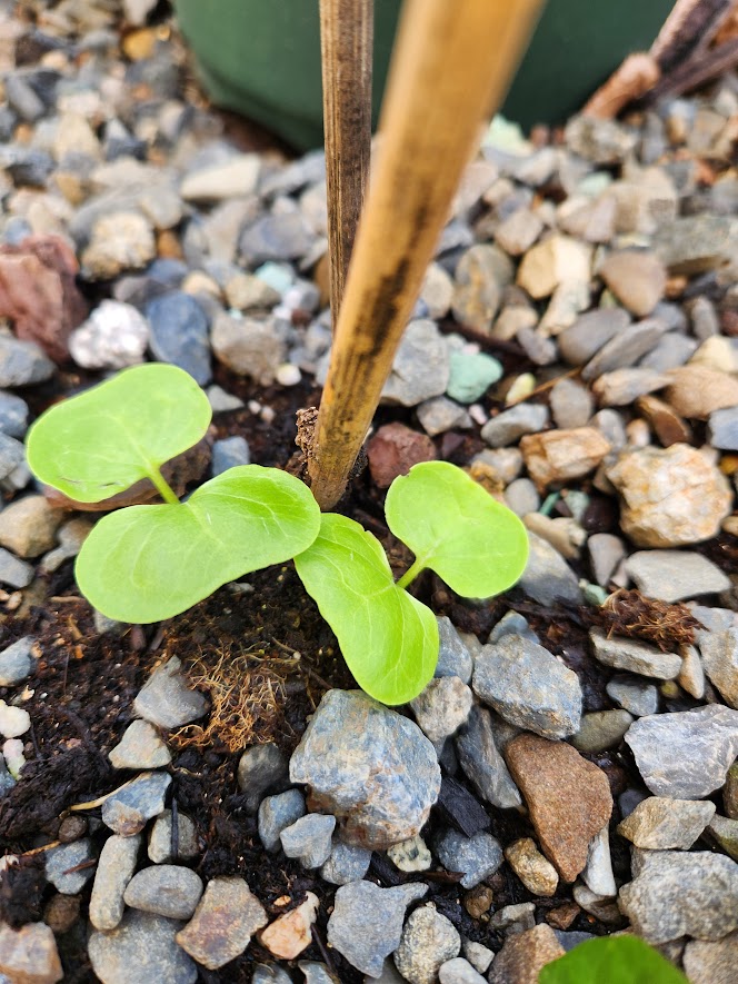 そして最近、こんな双葉をよく見るけど誰?もしかしてあの子かな?こぼれ種だろうか。