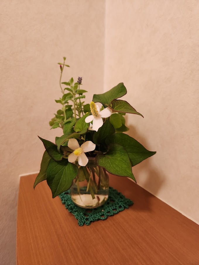 持ち家の時は沢山咲いたドクダミを刈り取り