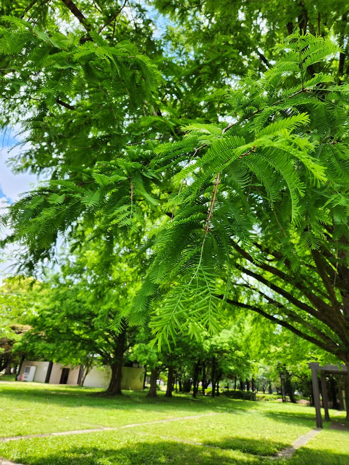 メタセコイヤの緑が美しく、葉も優しくて思わず触れてしまう。