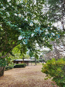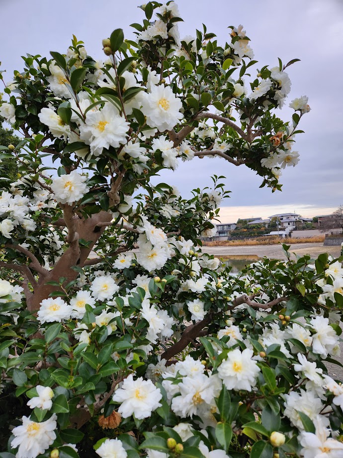2日前に小雨の中、奈良の松柏美術館へ行き、白い山茶花がきれいだった。