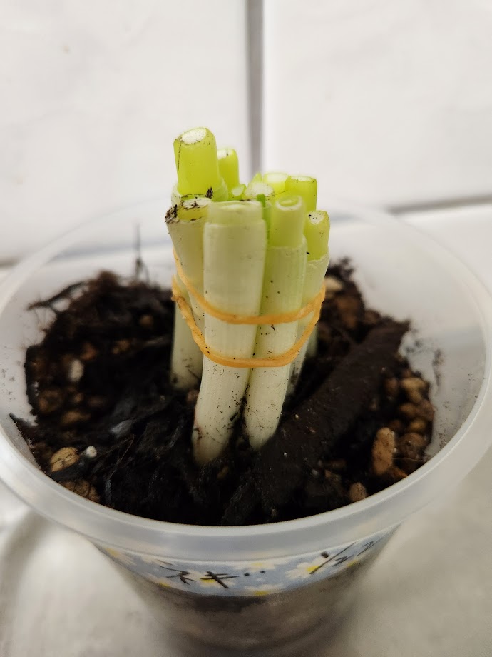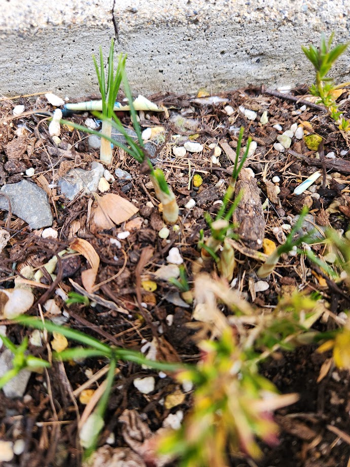 ネギを買ってきて、切り落とした根っこが捨てれなくて、かといって地植えもできず。台所の片隅で湿らせた土を入れたカップの中で育てている。ん?伸びてる?もう少し様子見よう。楽しみ。