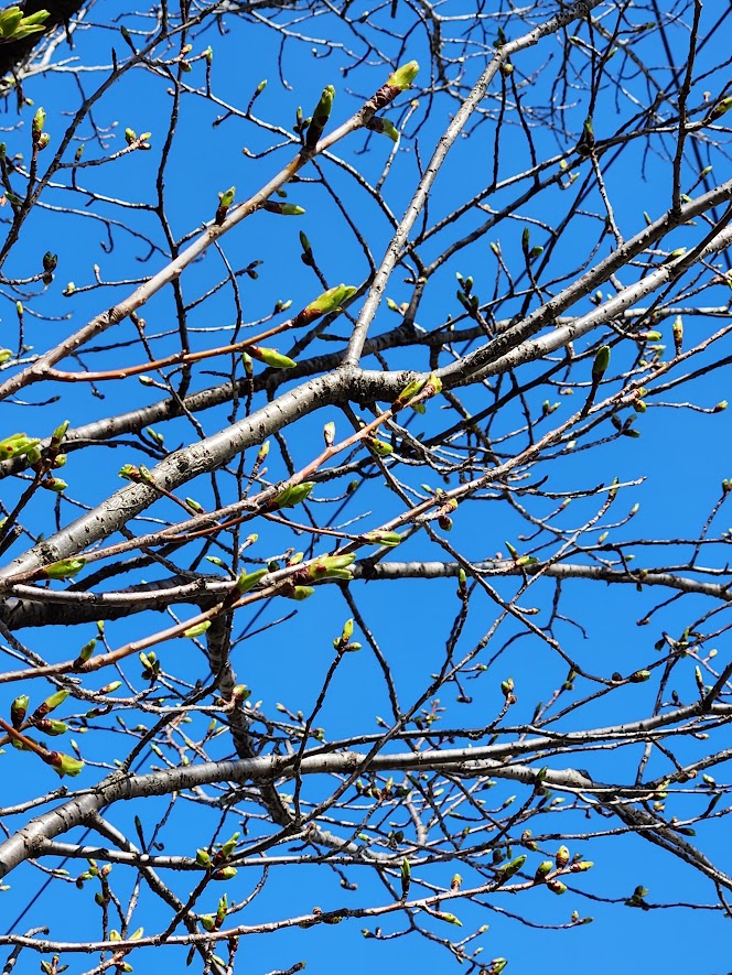 自宅に戻る途中に桜並木を眺めると芽吹き!この前まで茶色のつぼみ固しと言う感じだったのに、昼中は暑いと感じるときがある。朝夕は冷え込むけれど、今月末は近辺は桜の名所があるので花見でにぎわうだろうな。