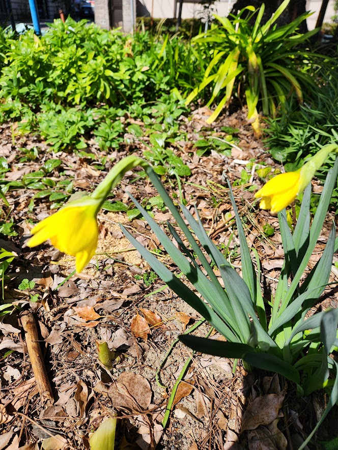 歯科の帰りの小さな公園ではジンチョウゲやラッパ水仙が咲きだした、日本水仙はもうあちらこちらで満開状態。桜は芽吹きだした。もうすぐだなとワクワクする。