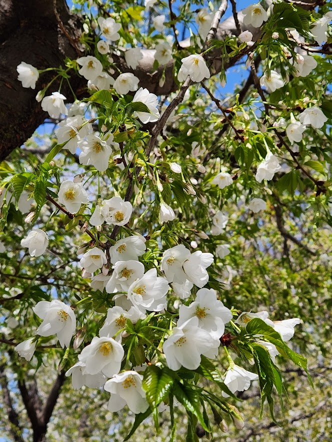 ずっと冬の間から買い物や散歩など歩くついでに桜の枝を眺めてきた。数日前から開花して日ごとに華やかになる。しだれ桜はこれからだろう、楽しみ。とはいえ桜が咲くと人も車も多いこと。