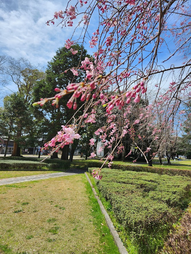 公園のしだれ桜ほぼ見ごろ
