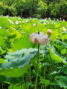 今朝は耳鼻科と内科にかかり早く終わったので、お昼前に急に思い立ち、電車で出かける。どうしても蓮の花が見たかった。