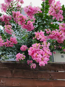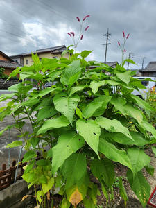 近くの民家でオオケタデと咲き誇るサルスベリ。
