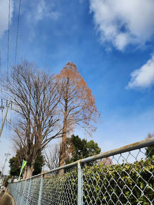お昼、暖かだったので買い物がてら公園を歩く。メタセコイヤの木々が高く青空にそびえていた。いつもここに来ると上を見上げる。青い空と高い梢を見ると心まで澄んできそう。